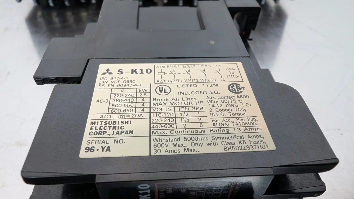 5 Pack Mitsubishi S-K10 Contactor 1NO 110/120VAC Coil 600VAC 20A