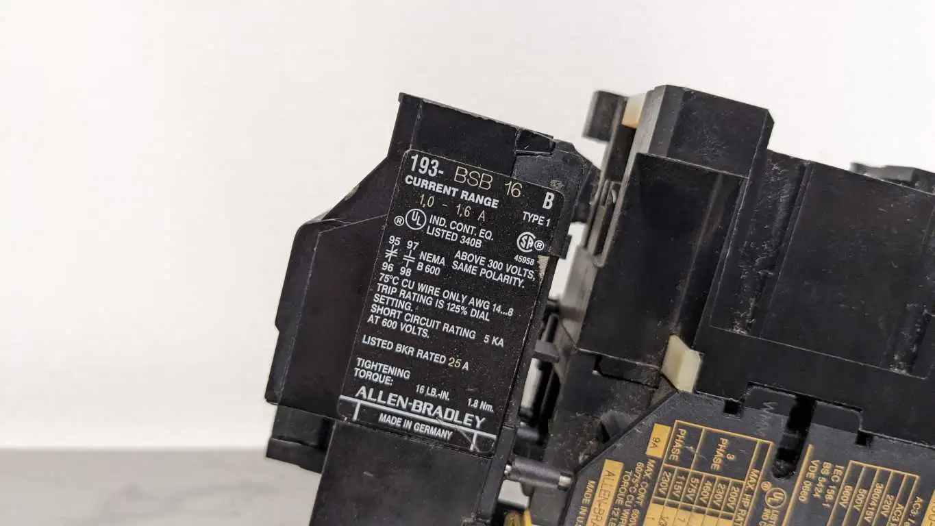 Product Details for Allen-Bradley 100-A09ND3 Contactor with Overload Relay 1.0-1.6A 193-BSB16