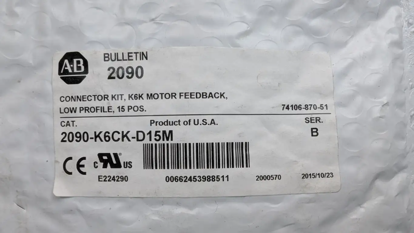 Product Details for Allen-Bradley 2090-K6CK-D15M Connector Kit Ser B 15-Point K6K Motor Feedback Low Profile