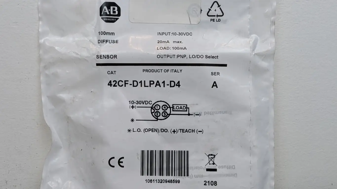 Product Details for Allen-Bradley 42CF-D1LPA1-D4 Diffuse Sensor Ser A 100mm 10-30VDC 100mA