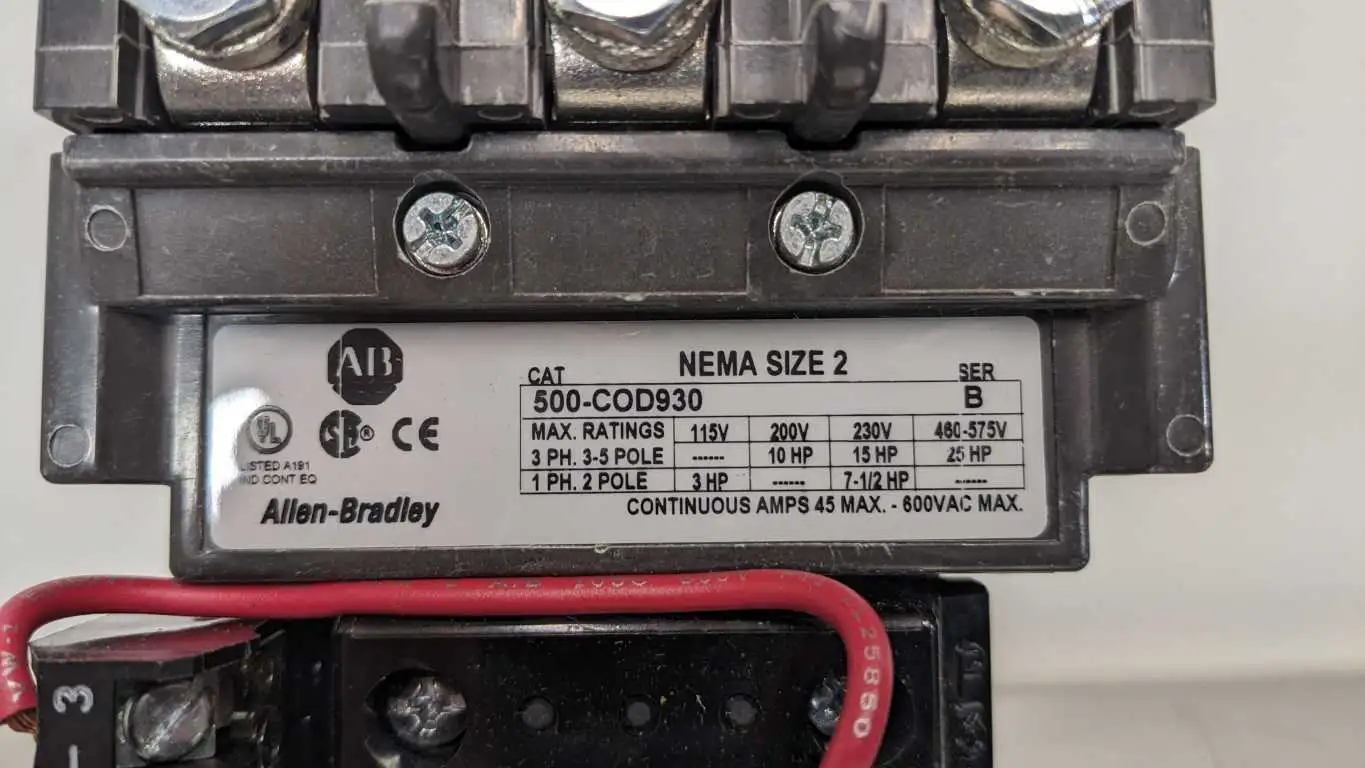 Allen-Bradley 500-COD930 AC Contactor NEMA 3 Poles N.O. Auxiliary Contact:
