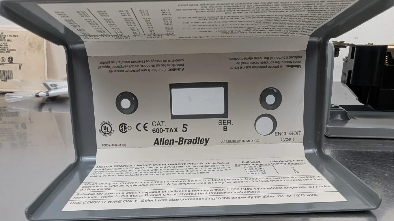 Allen-Bradley 600-TAX5 Manual Motor Starter Ser B 277VAC/230VDC 1/0.75 HP