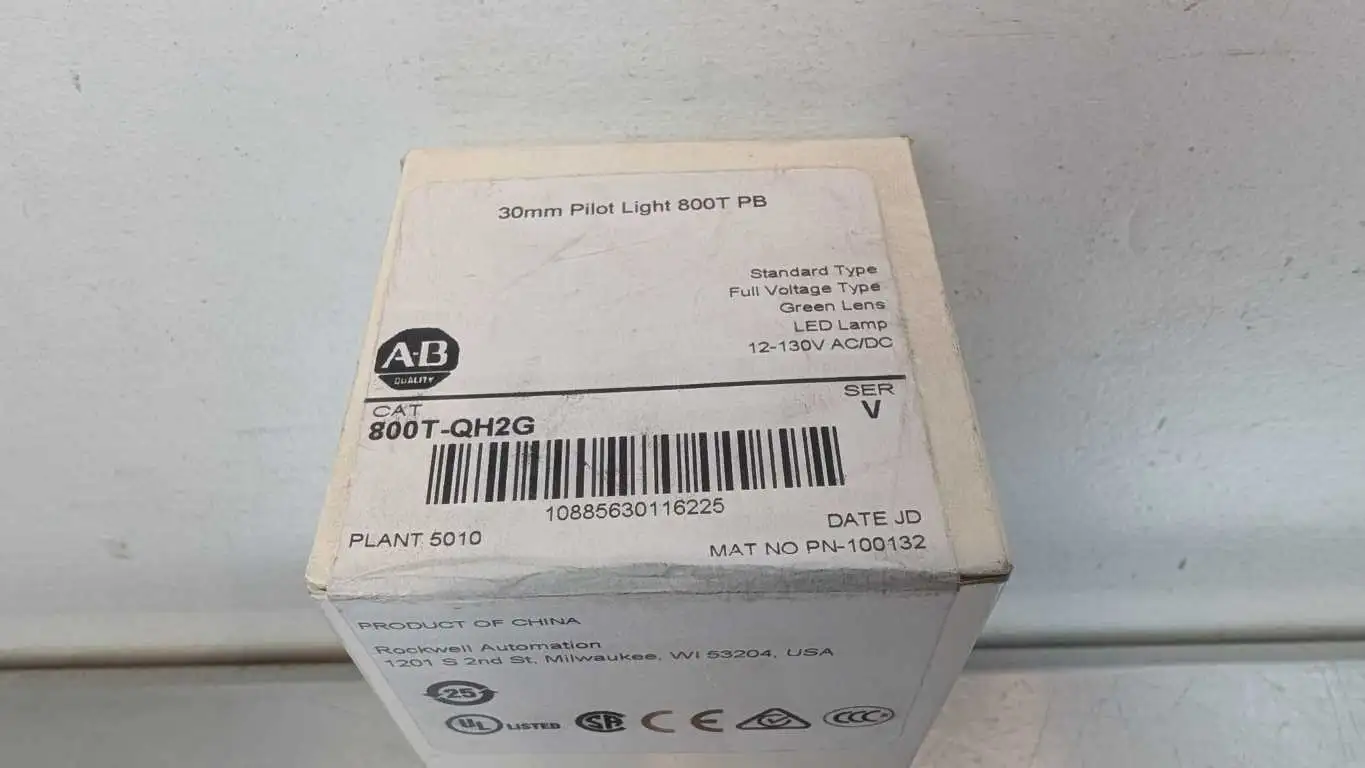 Allen-Bradley 800T-QH2G Pilot Light Pushbutton Ser V 30mm Green 12-130V AC/DC - New Factory Sealed