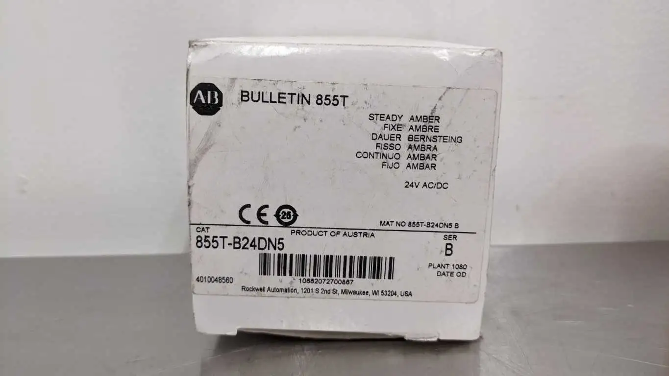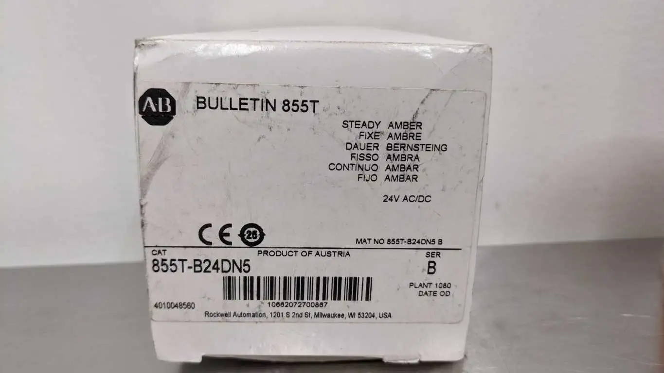 Allen-Bradley 855T-B24DN-5 Signal Light Tower Ser B 24VDC Amber Steady Amber New in Box Fast Ship