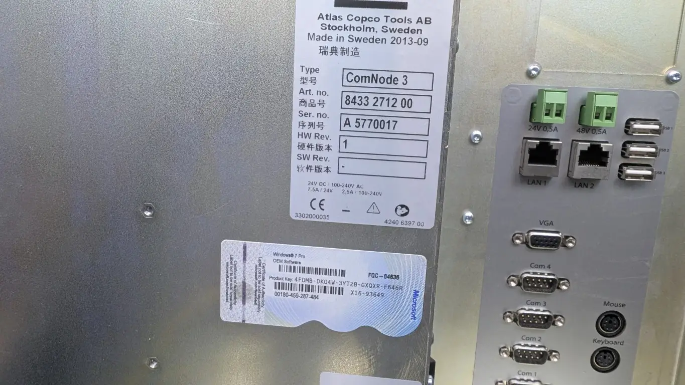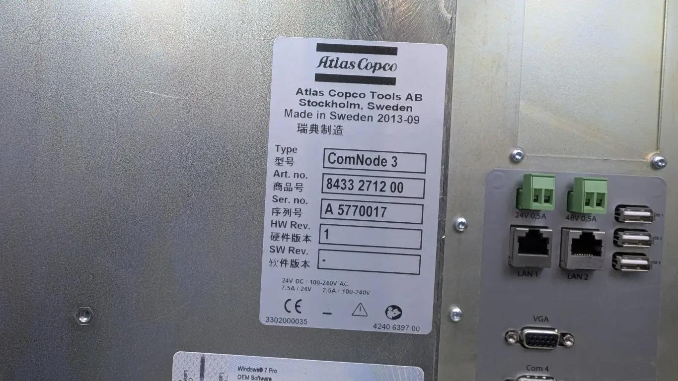Atlas Copco ComNode 3 Industrial Panel PC 8433 2712 00 24VDC/100-240VAC 7.5A/2.5A