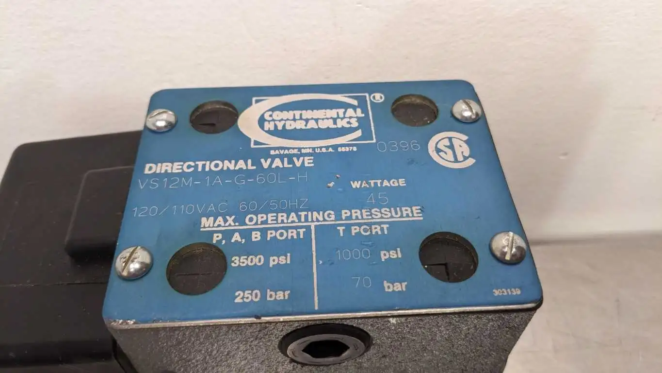Continental Hydraulics VS12M-1A-G-60L-H Directional Control Valve 3500 psi 250 bar: