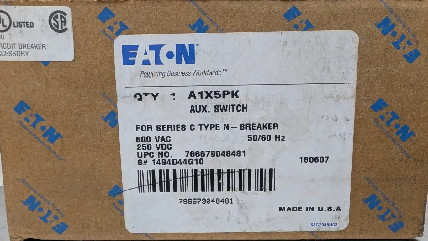 Eaton A1X5PK Auxiliary Switch 600VAC/250VDC - New Factory Sealed