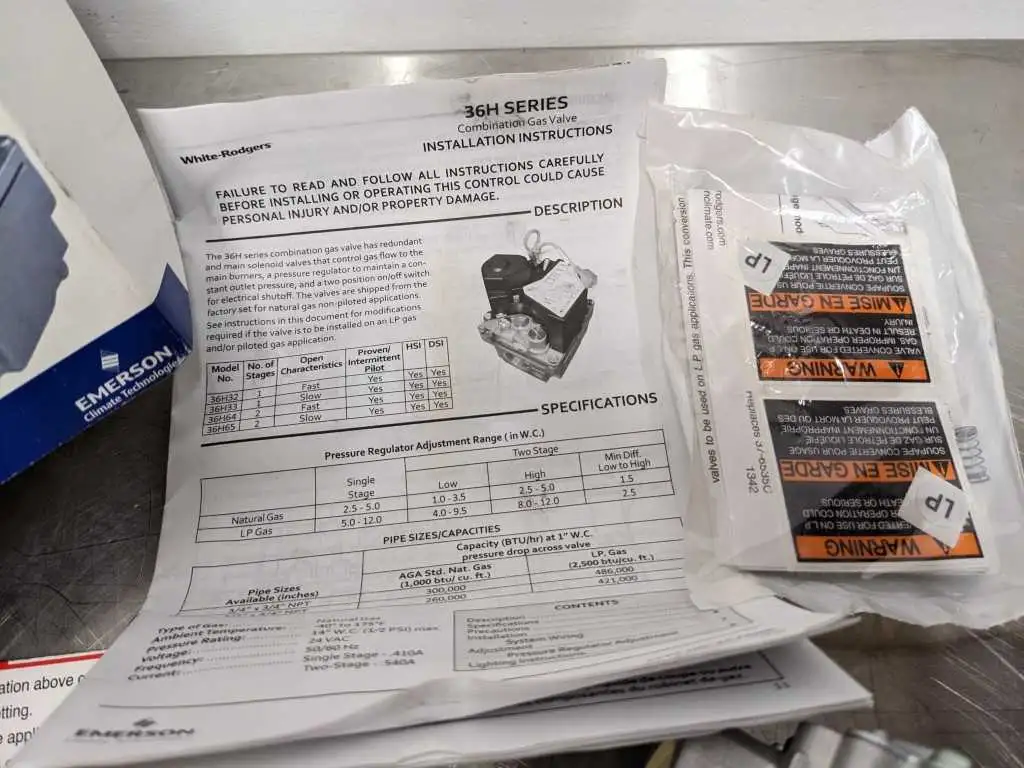 Emerson 36H64-463 Universal Electronic Ignition Gas Valve White-Rodgers - New – Open box