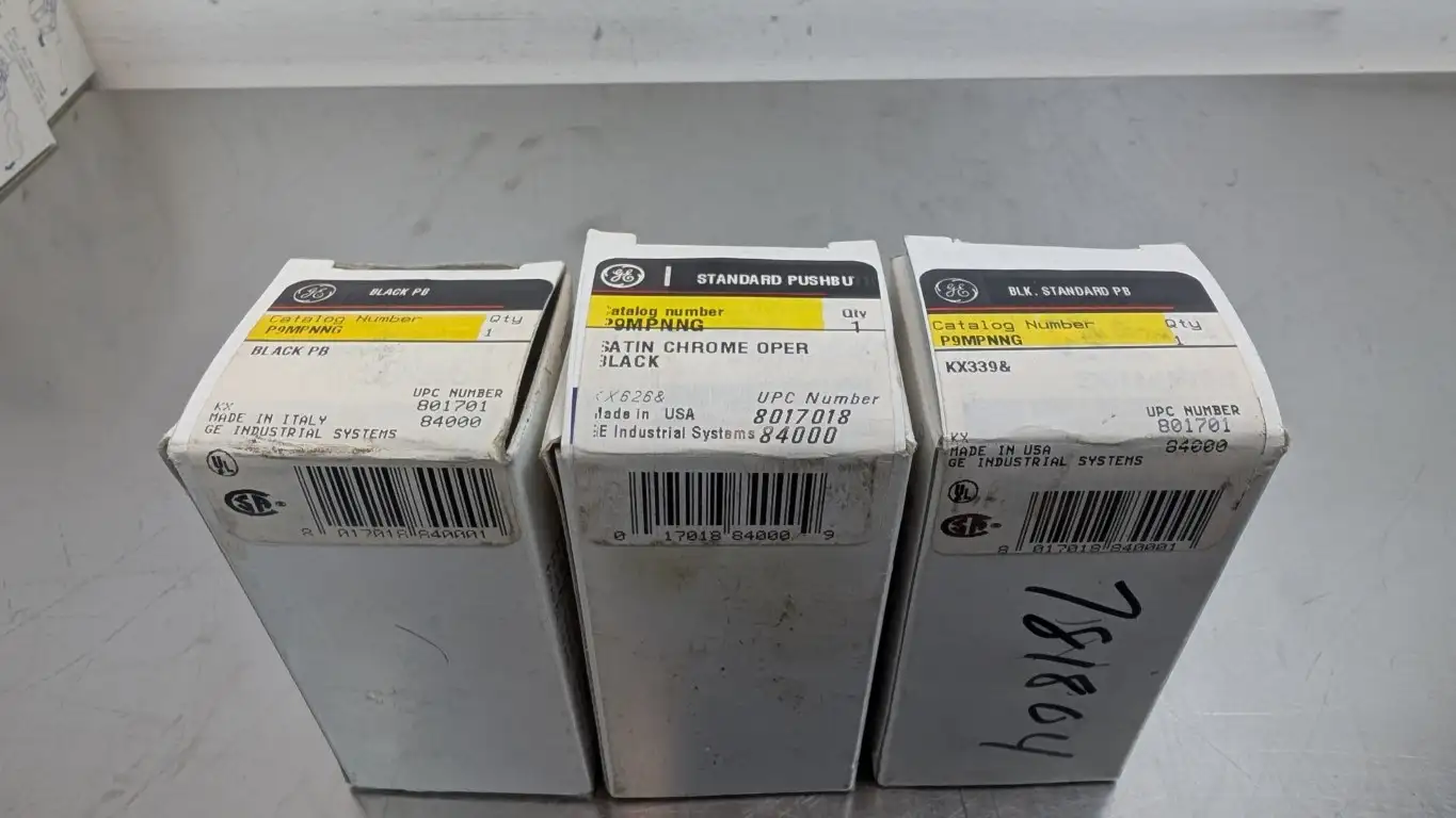 GE P9MPNNG Momentary Standard Pushbutton Satin Chrome 22mm Black - New