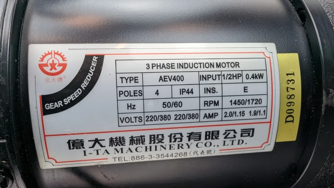 I-TA Machinery AEV400 Induction Gearmotor FM22 220/380VAC 2A/1.15A 1:9 1/2 HP 1450/1720 RPM IP44IP - New No Box
