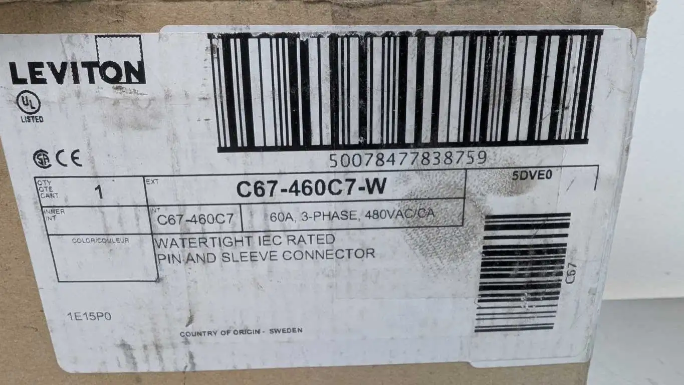 Leviton C67-460C7-W Pin and Sleeve Connector 480VAC 60A Watertight IEC Rated: