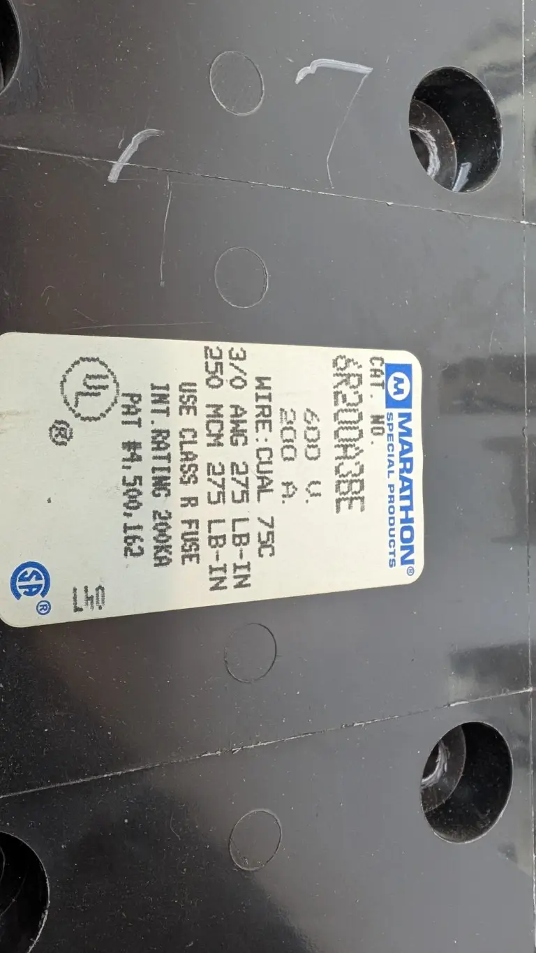 Marathon 6R200A3BE Fuse Block 600V 200A 3/0 AWG 250 MCM 3-Pole Class R