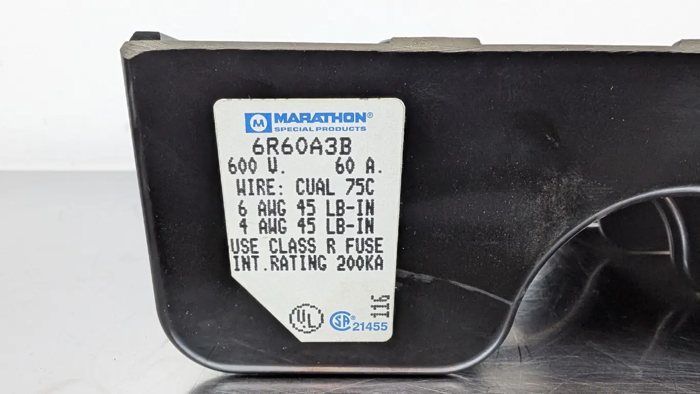 Marathon 6R60A3B Fuse Block 600V 60A 4-6 AWG 3-Pole Class R