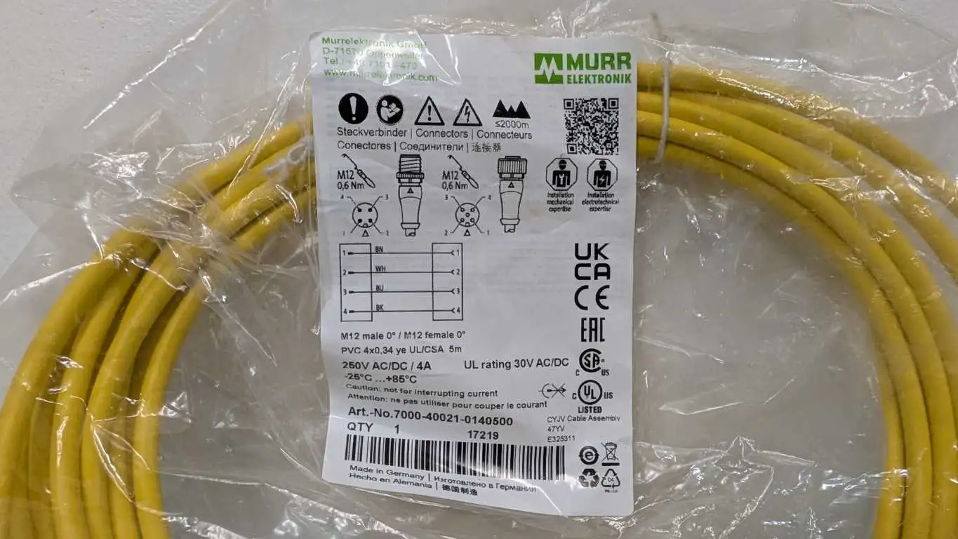Product Details for Murr Elektronik 7000-40021-0140500 Cordset M12 4 Pin 5m Yellow Male/Female 0°