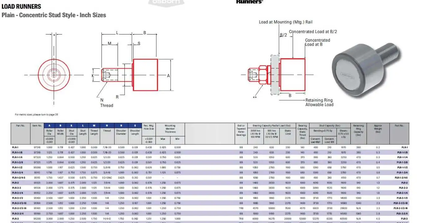 Product Details for Osborn PLR-3 Load Runners Plain – Concentric Stud Style