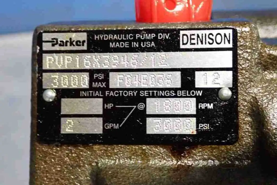 Parker PVP16X3949/12 Variable Volume Piston Pump Denison 3000 PSI Max 2 GPM at 1800 RPM: