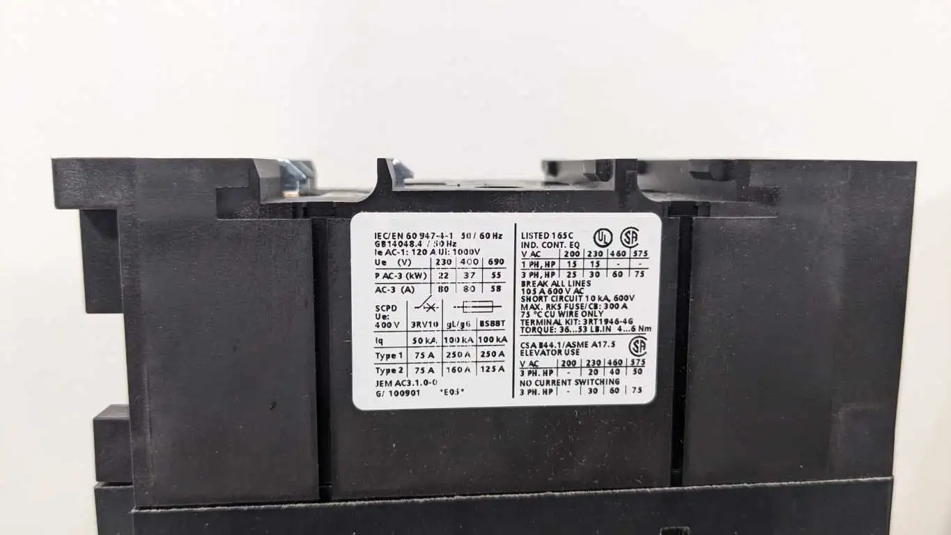 Additional MFG Notes on Siemens 3RT1045-1BB40 Contactor 24V Coil 80A: