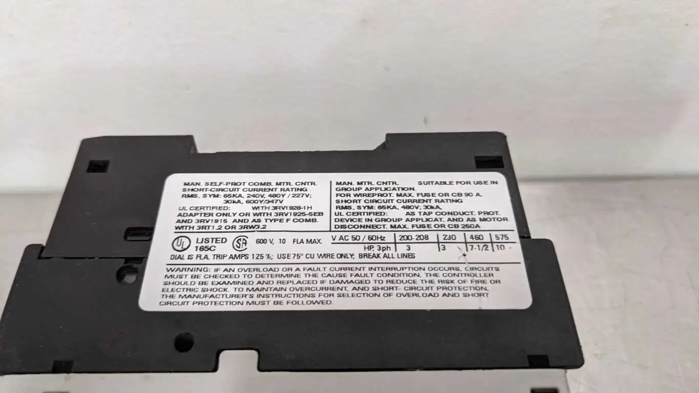 Product Details for Siemens 3RV1021-1JA10 Circuit Breaker Motor Protector 208-230/460/575VAC