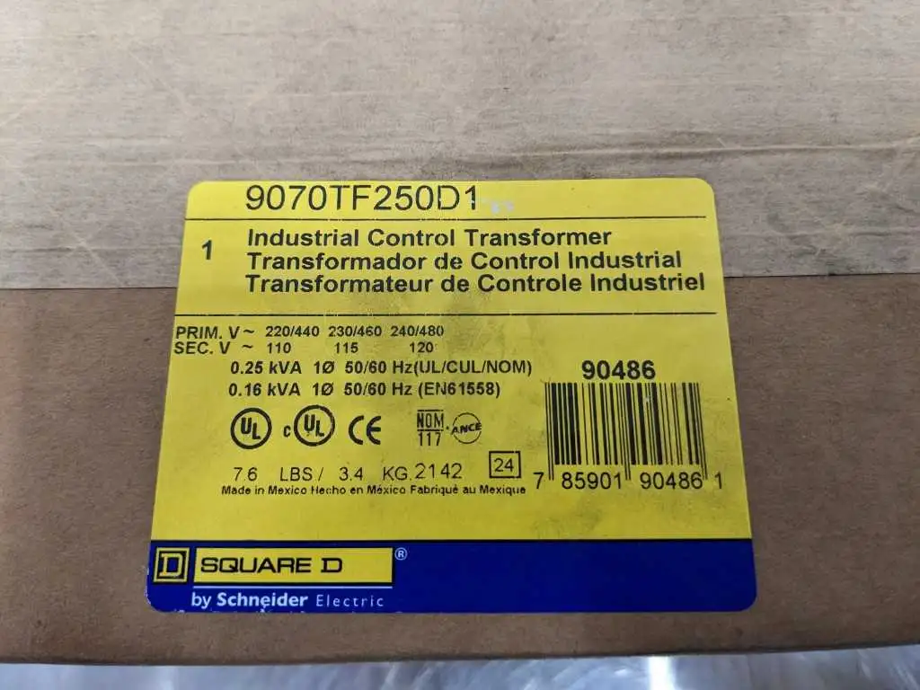 Square D 9070TF250D1 Transformer 0.25 KVA 0.25KVA Pri 220/440 230/460 240/480 Sec 110/115/120