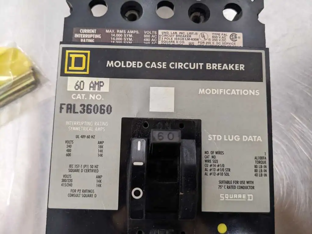 Square D FAL36060 Circuit Breaker 600 VAC 60A 3 Poles: