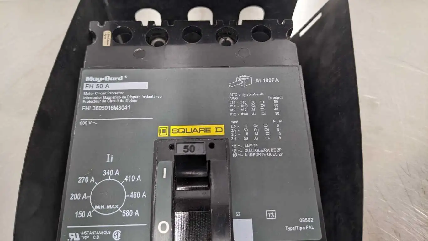 Square D FHL3605016M8041 Motor Circuit Protector 50A 600V Mag-Gard Breaker: