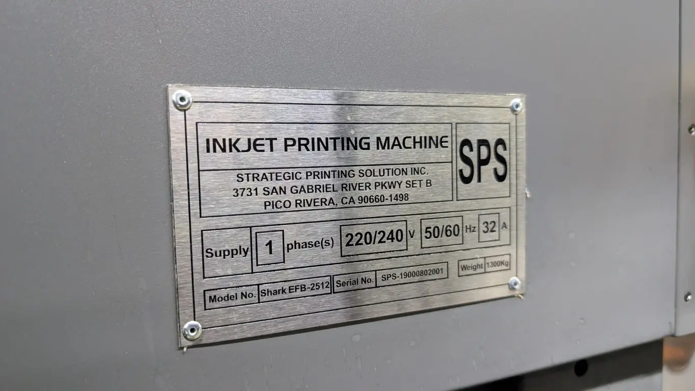 Stratojet SHARK-EFB2512 UV Flatbed Printer 220/240VAC 32A 4’x8’x4″ 2400 dpi