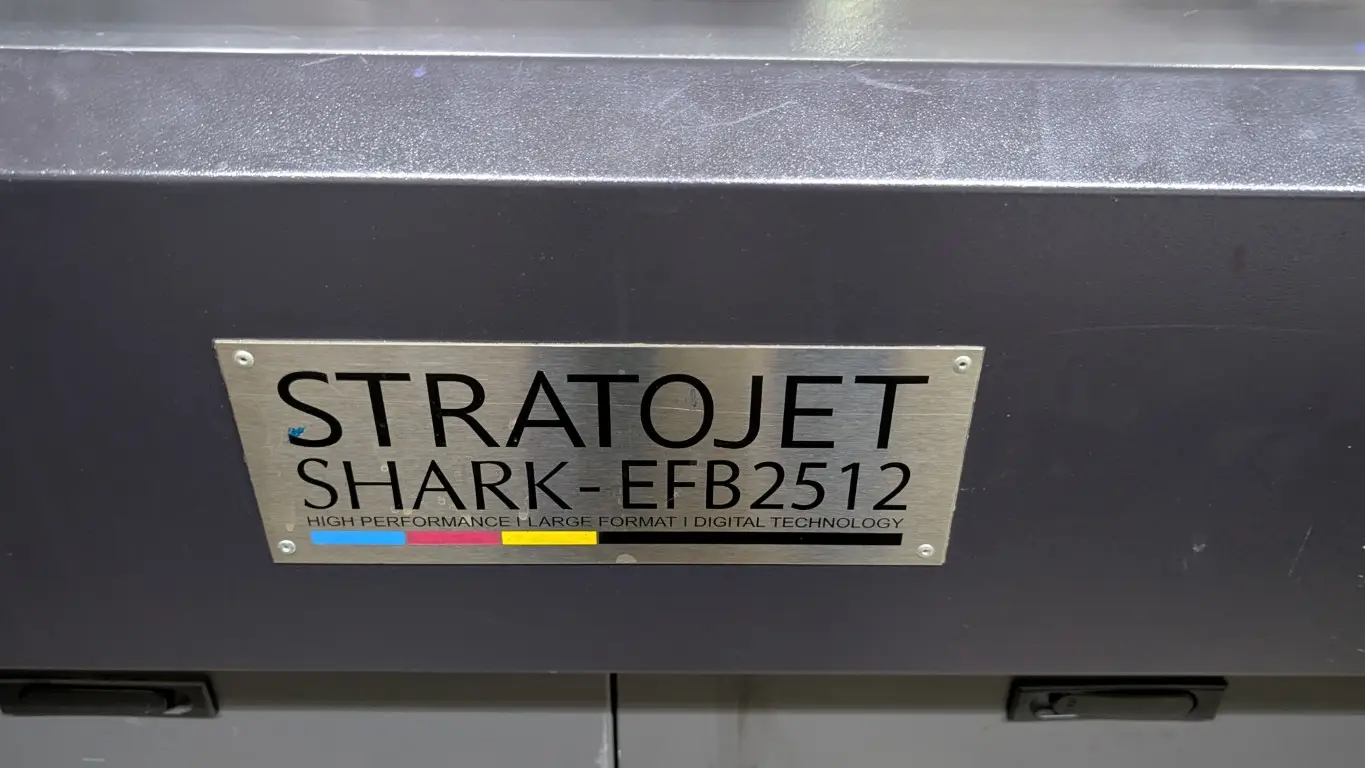 Stratojet SHARK-EFB2512 UV Flatbed Printer 220/240VAC 32A 4’x8’x4″ 2400 dpi - Used